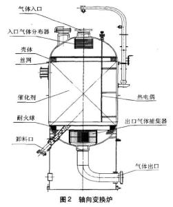 變換爐是合成氨工廠生產(chǎn)一氧化碳工段的設(shè)備,變換爐的結(jié)構(gòu)能否滿足工藝要求與計(jì)算設(shè)備、可靠性直接影響到產(chǎn)量、能耗、轉(zhuǎn)化率、觸媒用量和投資費(fèi)用等。變換爐的結(jié)構(gòu)隨著現(xiàn)代技術(shù)的發(fā)展和現(xiàn)代氨生產(chǎn)量需求一直在不斷的發(fā)展中。